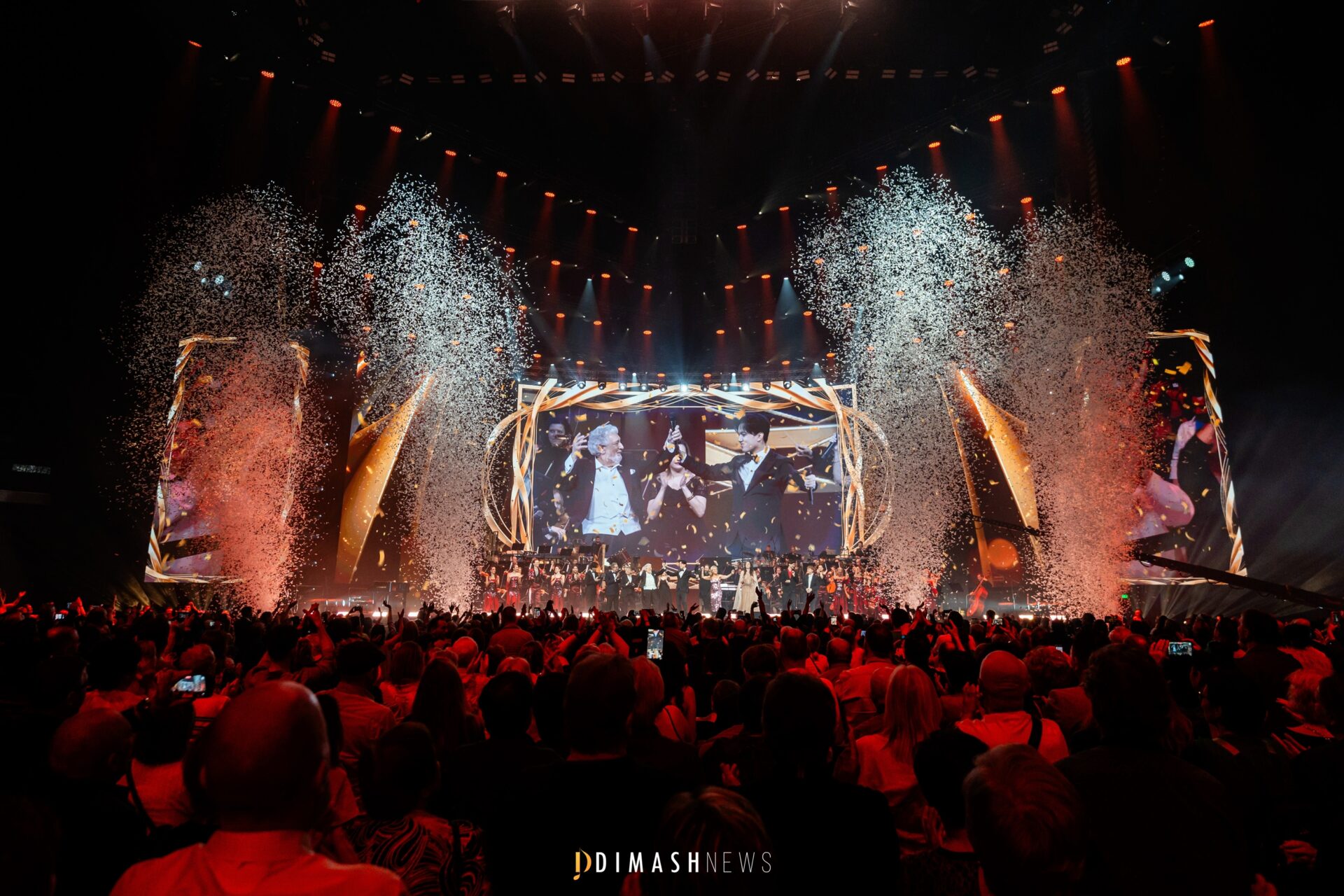 The long-awaited duet between the two vocalists thrilled the audience: “O Sole Mio” became a little performance of its own within the larger musical narrative of the evening. Dimash shared with the audience that he had known the work of the legendary Domingo since the age of five and could say with certainty that it was thanks to the maestro that he became a singer.
