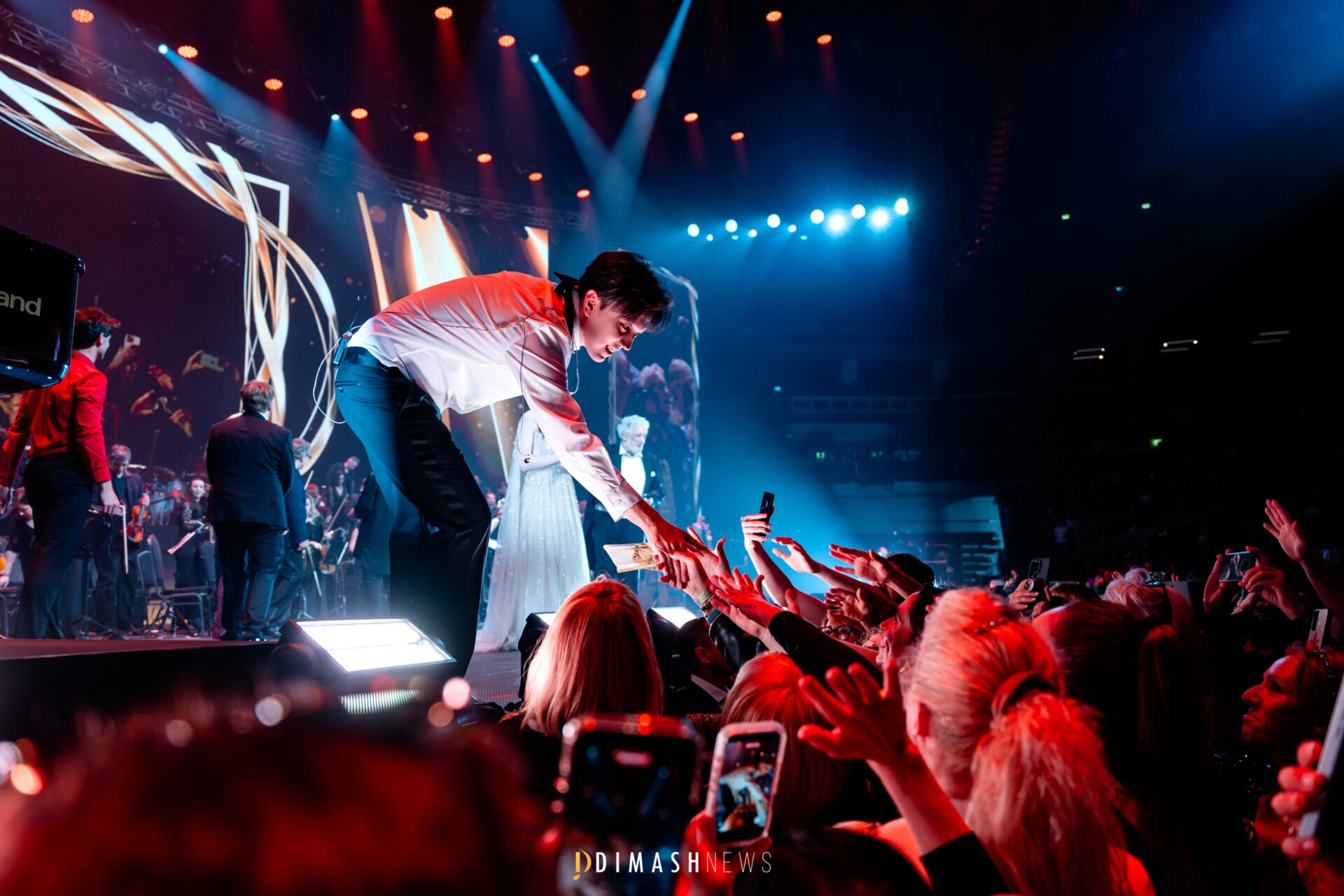 National collaborations continued during Dimash’s performance of composer Igor Krutoy’s Stranger, when the orchestra conductor of the Budafok Dohnányi Orchestra, Péter Pejtsik, took up the ancient Kazakh instrument kobyz. The maestro also performed a cello solo during Dimash’s rendition of the timeless classic The Show Must Go On.