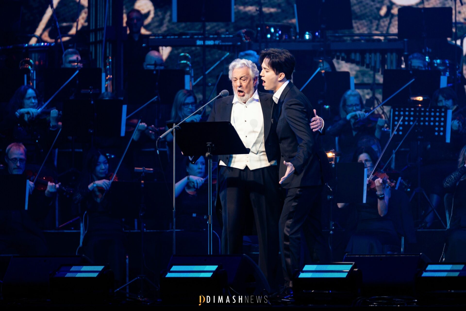The two main heroes of the evening, Dimash and Maestro Domingo – presented a joint gift to the audience: O Sole Mio (“My Sun”). The world-famous song, written in 1898, is considered a pinnacle of Neapolitan music. In this radiant duet, both artists shone brightly and inspired one another with their mastery.