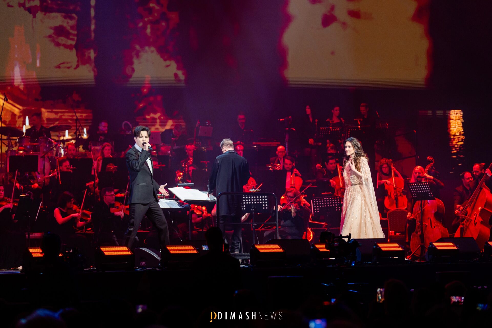 The climax of the unique concert became the duet of Dimash Qudaibergen and Ukrainian opera singer Viktoriya Buleyeva. The artists delivered a benchmark performance of the most famous number from the musical The Phantom of the Opera.