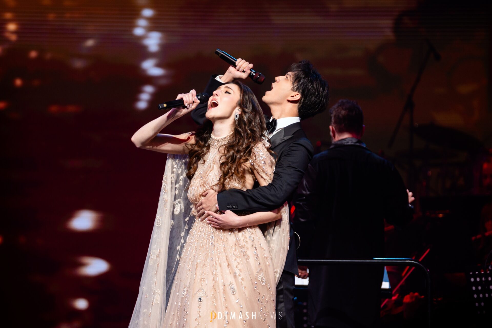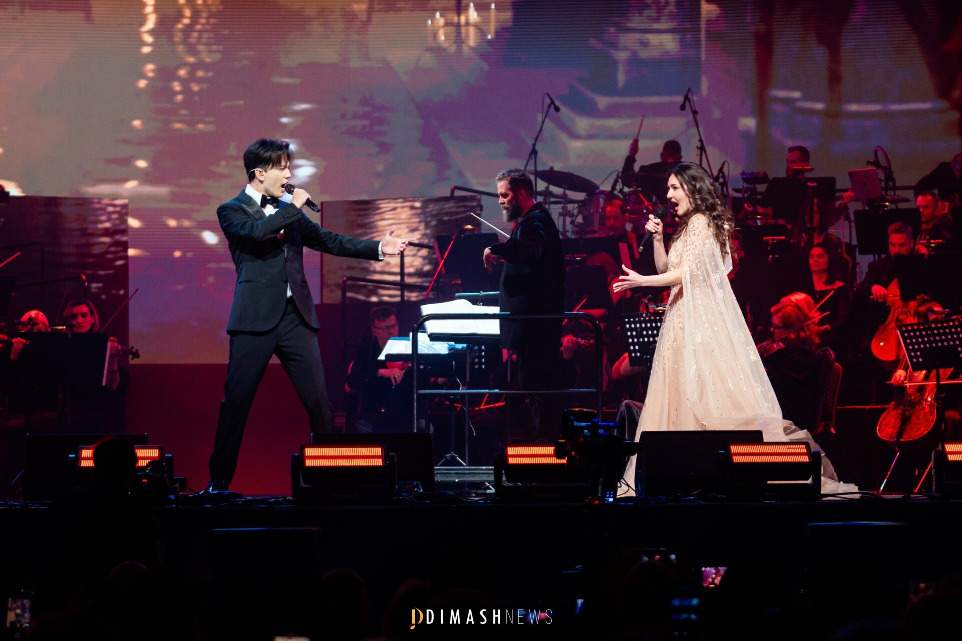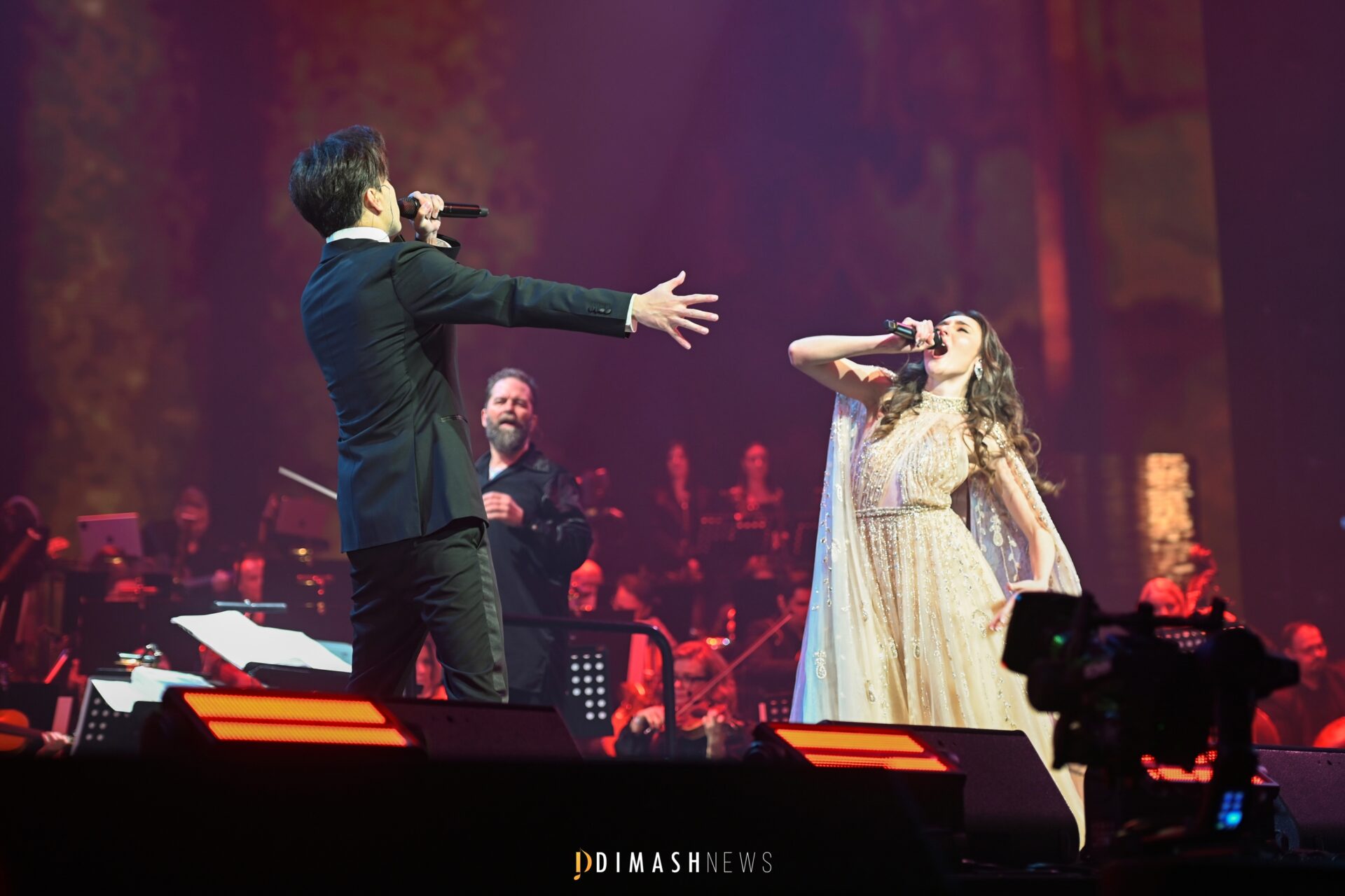 While Dimash fans had previously heard his renditions of O Sole Mio and Bésame Mucho at gala concerts or in a cappella moments during solo shows, the duet from Andrew Lloyd Webber’s legendary Broadway musical The Phantom of the Opera was performed by the Kazakh artist for the very first time.